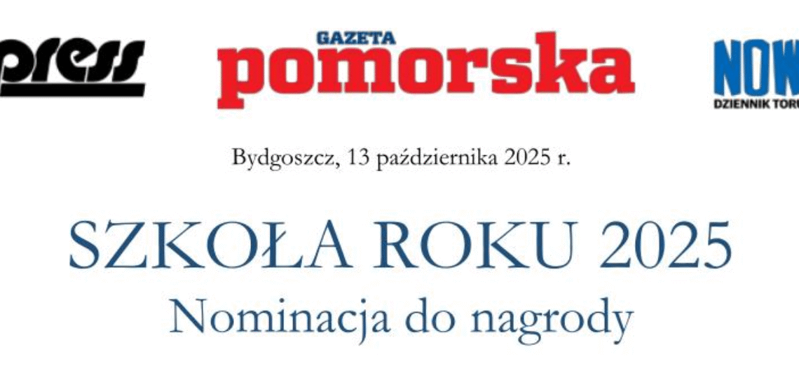 Miło nam poinformować, że Toruński Medyk kolejny raz otrzymał nominację do tytułu “Szkoły Roku”, organiziowanym przez redakcje „Gazety Pomorskiej”, „Expressu Bydgoskiego” i „Nowości – Dziennika Toruńskiego”